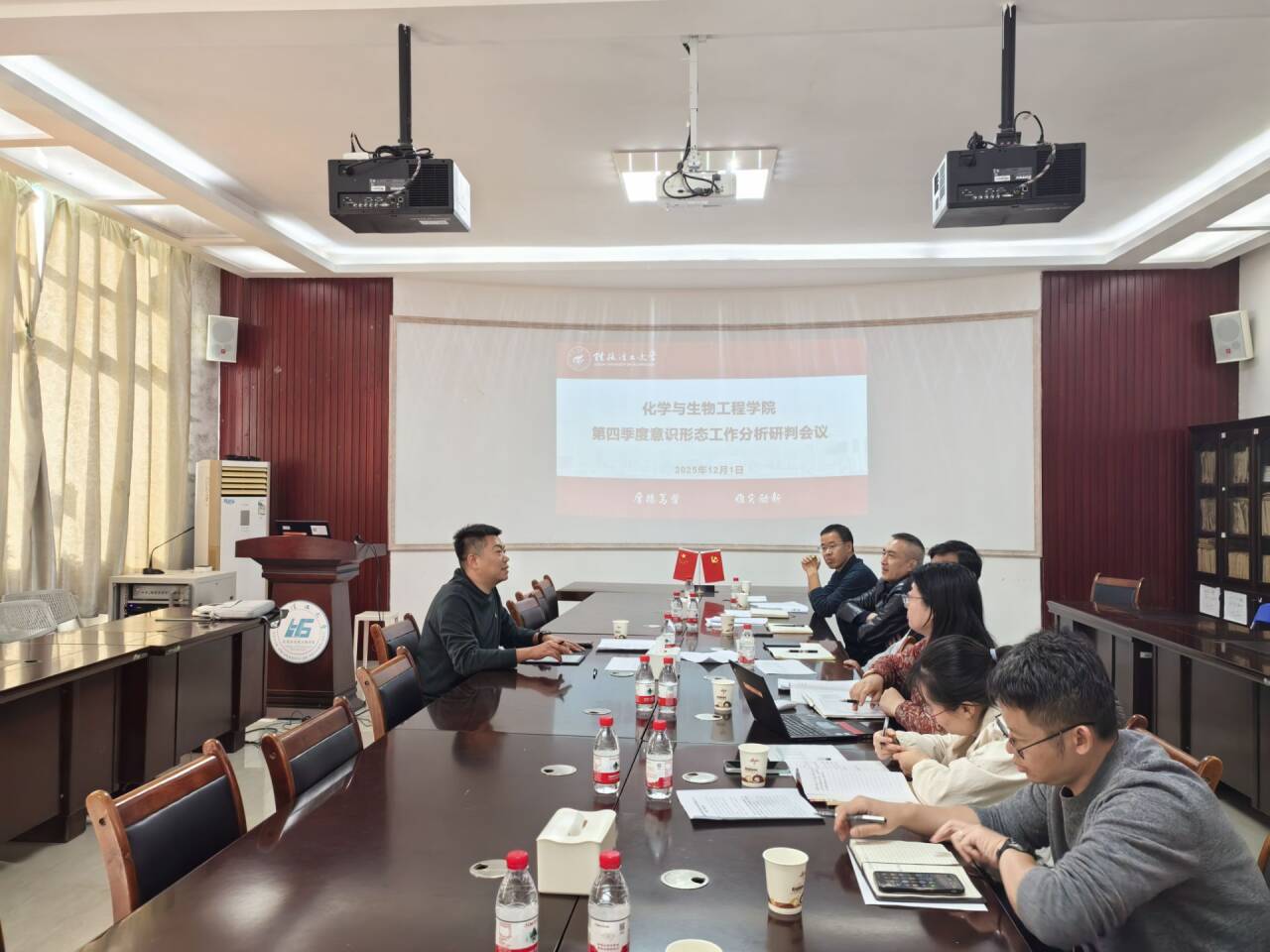 2025年12月1日下午,化学与生物工程学院在12217会议室召开了2025年第四季度意识形态工作分析研判会议。深入学习贯彻习近平总书记关于意识形态工作的重要论述,总结第三季度工作,分析当前形势,部署下一阶段重点任务。学院党政领导参加了此次会议,会议由学院党委书记彭代江主持。