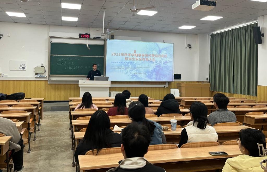 为切实做好寒假期间研究生教育管理与服务保障工作,构建安全和谐校园环境。1月14日-15日,学院在雁山校区召开了2026年研究生寒假离校暨延迟离校安全教育大会,学院分管研究生工作副院长孔翔飞、研究生和全体研究生参加了会议。