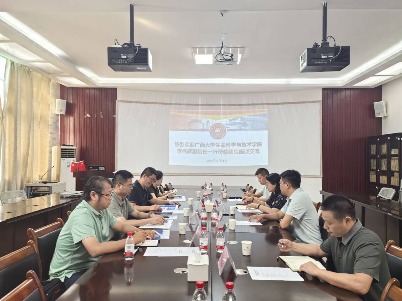 10月11日上午,广西大学生命科学与技术学院李伟辉副院长等一行四人莅临我院,就学科发展、人才培养、科研平台建设等方面开展深入交流。我院党委书记彭代江、副院长李霞、学工组长黄道坤、生物工程教研室李海云等参加了此次座谈。