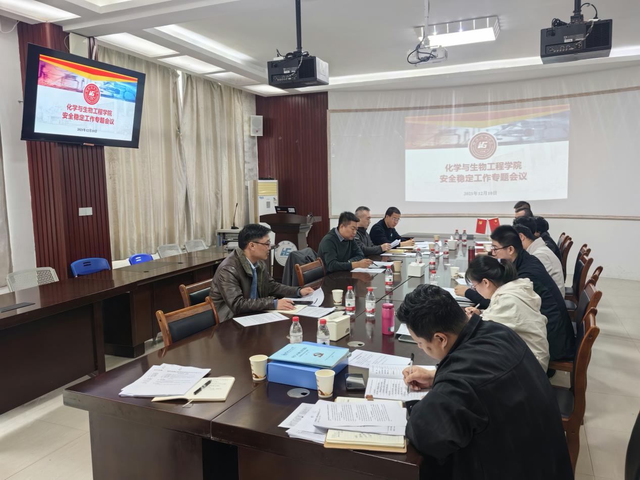 为进一步夯实学院事业发展安全根基,筑牢校园安全防线,化学与生物工程学院于12月10日在12217会议室组织召开了安全稳定工作专题会议。学院党政领导班子成员、各教研室主任、实验室中心主任、学工组长、院办主任等参加了会议。会议由学院党委书记彭代江主持。