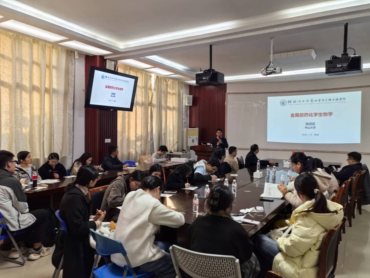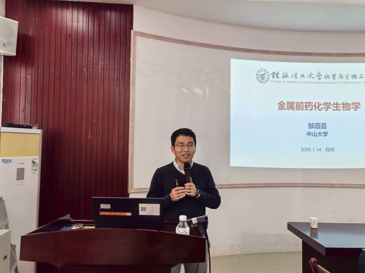 1月14日下午,中山大学邹滔滔教授应化学与生物工程学院邀请,在我校雁山校区萃华楼217室作题为《金属前药化学生物学》的学术报告。报告会由梁福沛教授主持,近百名师生现场参加。