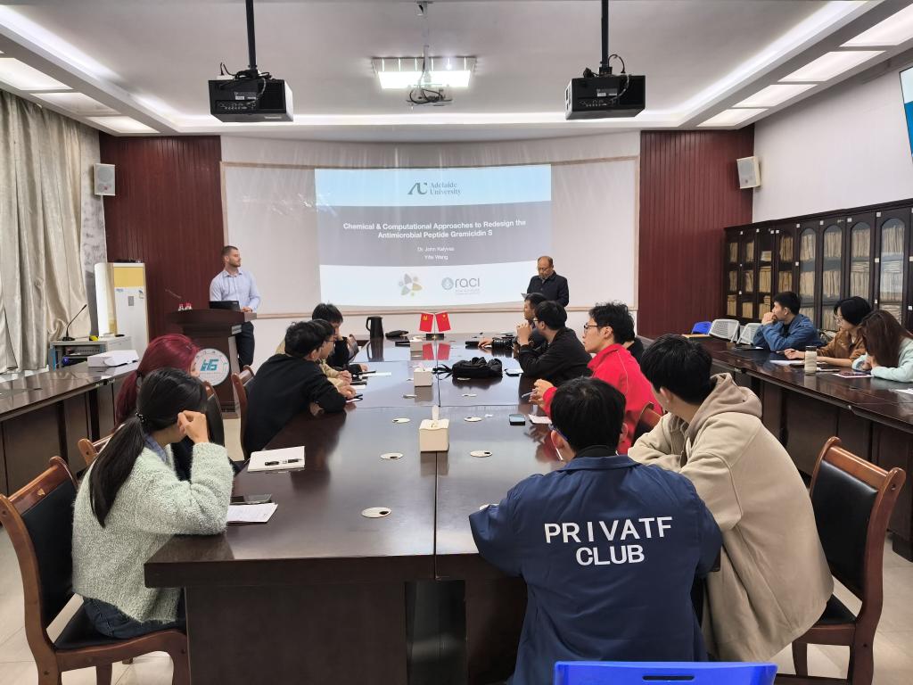 3月25日上午,由化学与生物工程学院主办的学术讲座在雁山校区12217会议室顺利举行。来自澳大利亚阿德莱德大学的John Kalyvas博士与王亦非博士应邀作了题为“化学与AI策略从头设计抗菌肽短杆菌肽S”的精彩报告。学院相关专业师生到场聆听,讲座由学院喻敬贤教授主持。